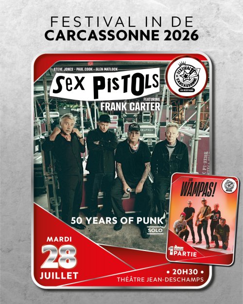 Groupe iconique et figure majeure du punk britannique, les Sex Pistols s’apprêtent à secouer le Festival de Carcassonne... avec un concert explosif et irrévérencieux au cœur de la Cité Médiévale ! Une soirée à ne pas manquer avec, en ouverture du show, l’incontournable groupe punk rock français : Les Wampas !